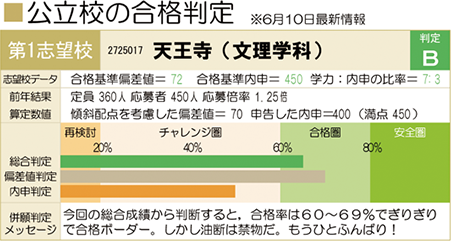 - 精度の高い大阪・兵庫・和歌山・広島の公立高校志望校判定!大阪府の公立高校の判定では5教科の得点に通知表の内申点をかけあわせた、入試本番に近い判定が可能! (公立2校、私立2校まで)