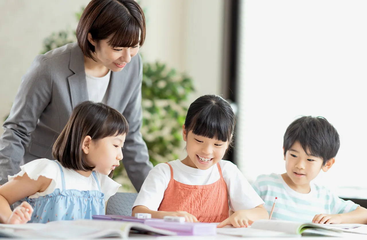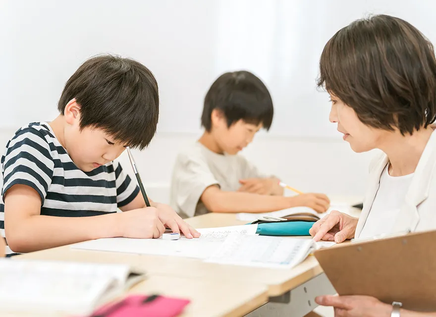 生徒2人に先生1人の個別指導で、一人ひとりの理解度や性格に合わせて学習をサポートします。学習習慣の確立から学力の定着、将来必要になる“考える力”まで無理なく伸ばし、小学生の成長に寄り添う学びを実現します。