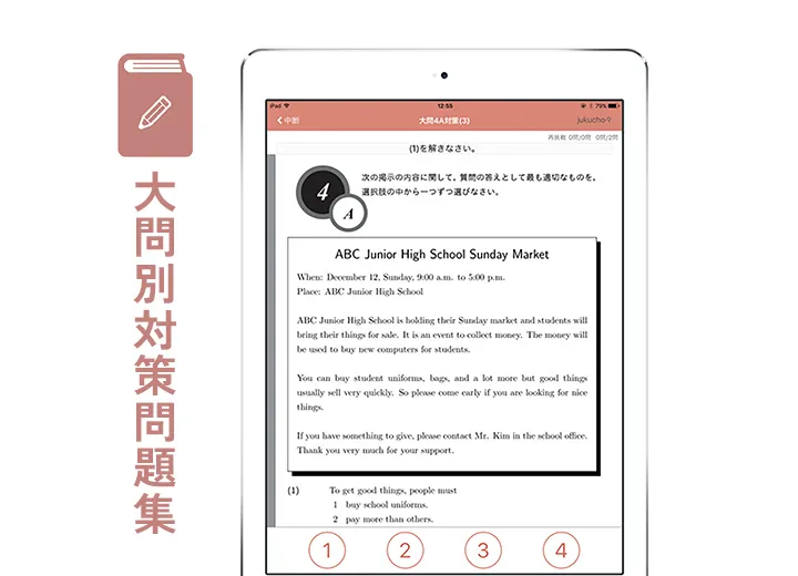 第一ゼミナールの学習とあわせて活用することで、英検®合格に向けた対策を効率よく進めることができます。教室で学んだ英語の知識や解き方を、アプリを使って自宅でも繰り返し演習できるため、理解を深めながら学習内容を定着させることができます。 塾での学習と家庭学習をつなぐことで、日々の積み重ねが英検®合格につながります。