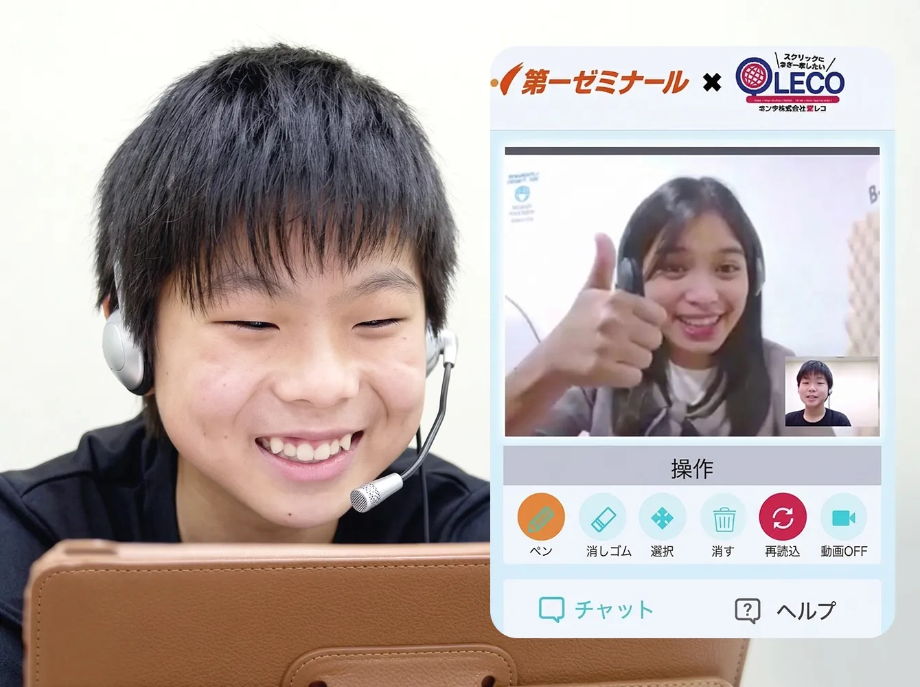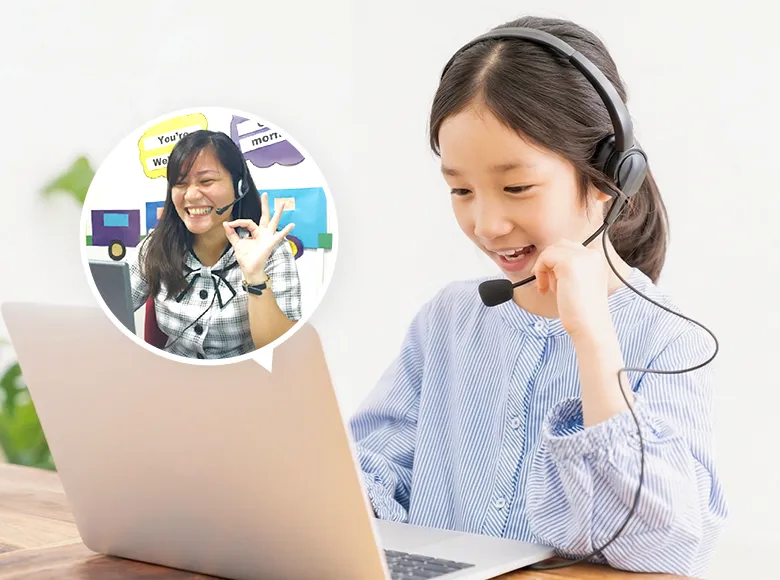オンライン英会話は、教室で学んだ英語を実際に使う機会をつくるコースです。外国人講師との1対1レッスンを通じて、聞く・話す力を無理なく伸ばします。