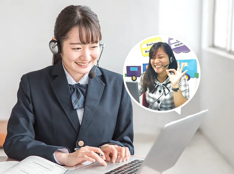 オンライン英会話は、学校や塾で学ぶ内容と並行して、聞く・話す力を強化するコースです。外国人講師との1対1レッスンを通じて、学んだ単語や表現を実際に使う経験を積み重ねます。学習内容に沿ったテキストを活用しながら理解を深め、自分の考えや内容を英語で伝える力を育てます。