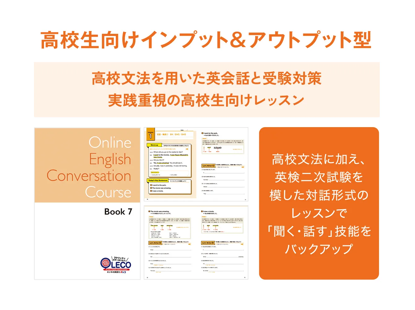 高校生のオンライン英会話では、学習内容に沿ったテキストを活用し、学校や塾で学ぶ英語と並行してレッスンを進めます。文法や語彙の理解を深めながら、学んだ内容を実際に使うことで、知識を定着させ、使える英語へと広げていきます。