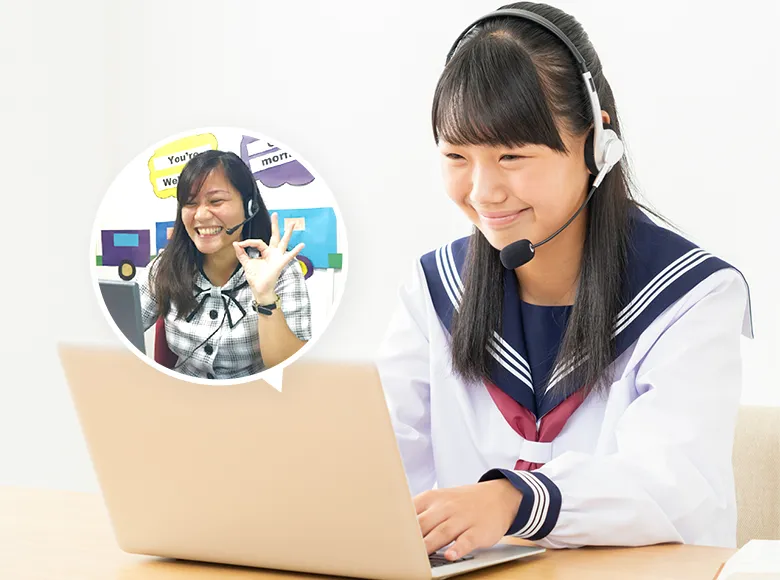 学校や塾で学ぶ内容と並行して、聞く・話す力を強化するオンライン英会話。学校の学習範囲を踏まえたテキストを活用し、定期テストや英検にもつながる実戦力を育てます。