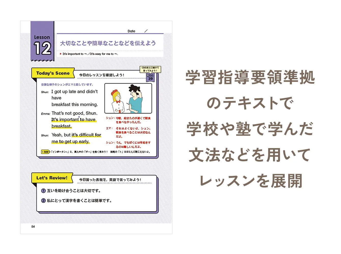 中学生のオンライン英会話では、学習指導要領に沿ったテキストを活用し、学校や塾で学んだ内容をもとにレッスンを展開します。学習内容と並行して取り組むことで、学んだことがそのまま会話につながる実感を得られます。理解を深めながら、使える英語へと広げていきます。