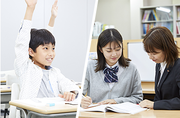 第一ゼミナールでは、個別指導コースを併設、または近隣で個別指導専門教室を開校しております。そのため、集団指導と個別指導の2つの学び方から、お子さま一人ひとりにぴったりの授業を受けていただくことができます。例えば同じ目標を持つ仲間とさらに上をめざしたい教科は集団指導、自分専用のカリキュラムでしっかり実力をつけたい教科は個別指導で受講するなど、お子さまに最適な学習スタイルをご提案いたします。 -