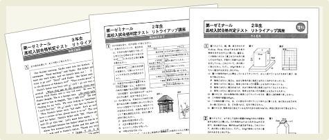 志望校・実力判定テスト(公開テスト)の復習用教材としてやり直しプリント(リトライアッププリント)・解説動画(小4〜6算数・中1〜3数学)を準備しております。