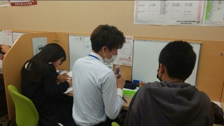 ①1コマ80分、先生1人に対して生徒2人の個別指導を行います。自分にあった先生が選べます。