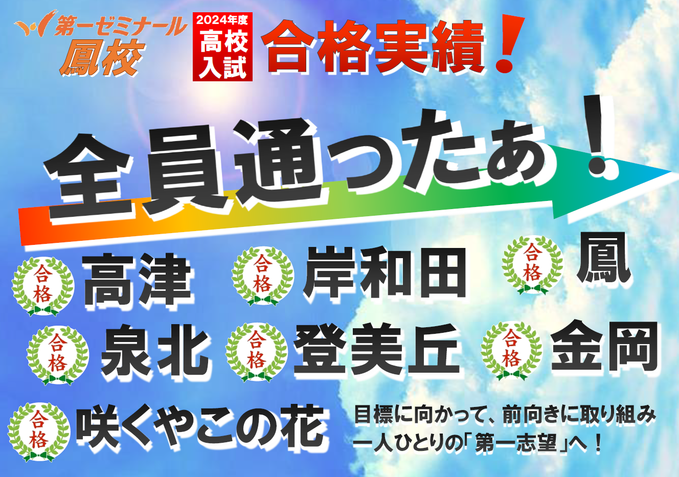 ホーム > 各校一覧 > 大阪府の市町村から学習塾を探す > 第一ゼミナール鳳校の教室紹介(堺市の学習塾)