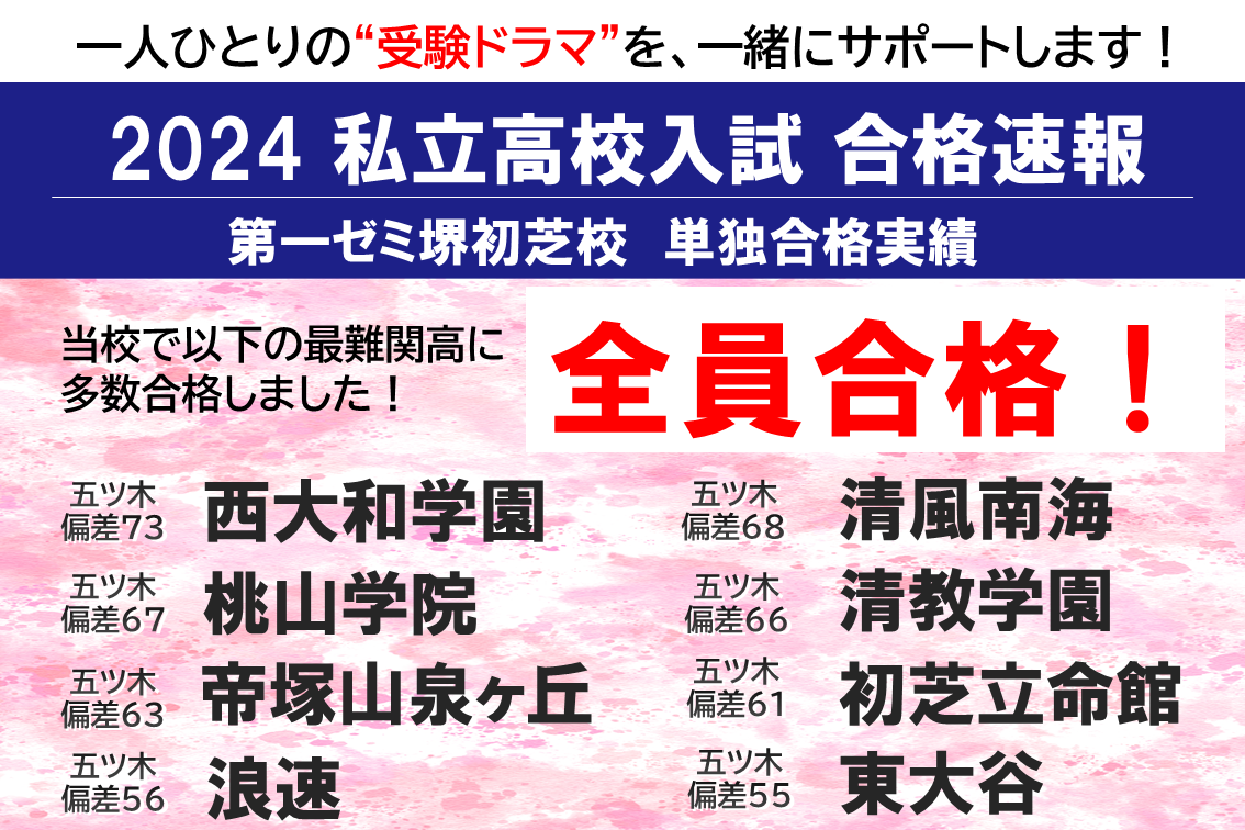 堺初芝校の「私立高校」合格速報!