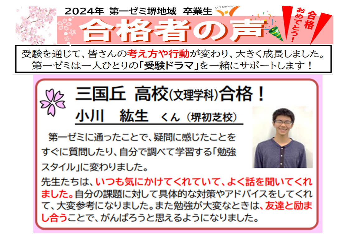 2.第一ゼミ堺初芝校 072-286-1700