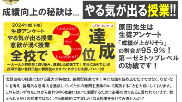 第一ゼミナール北野田校は『やる気を引き出す指導』に注力しています。